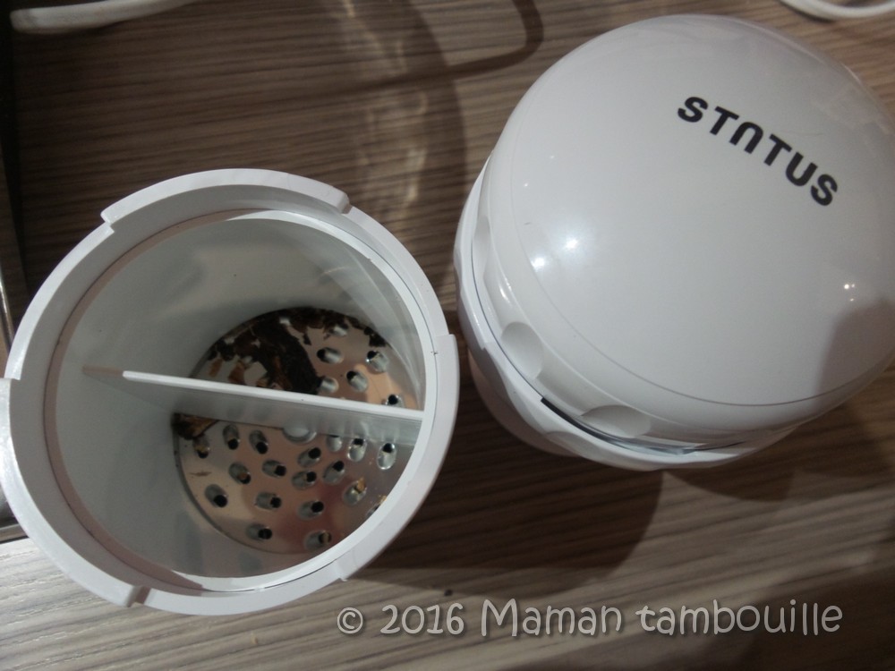 - une pompe et des bouchons Vacuvin. A la maison, seul Papa Tambouille boit du vin alors, quand il ouvre une bouteille, elle reste souvent plusieurs jours entamée. Malheureusement, le vin prend rapidement l’air et ne devient plus très bon (d’ailleurs, il finit souvent dans le vinaigrier). Avec ces bouchons et grâce à la pompe spéciale, le vide d’air est fait très simplement dans la bouteille permettant une conservation beaucoup plus longue. Il suffit de mettre le bouchon puis de pomper quelques instants. On entend des petits « clicks » quand le vide d’air est terminé. Voilà un produit qui va beaucoup nous servir !
