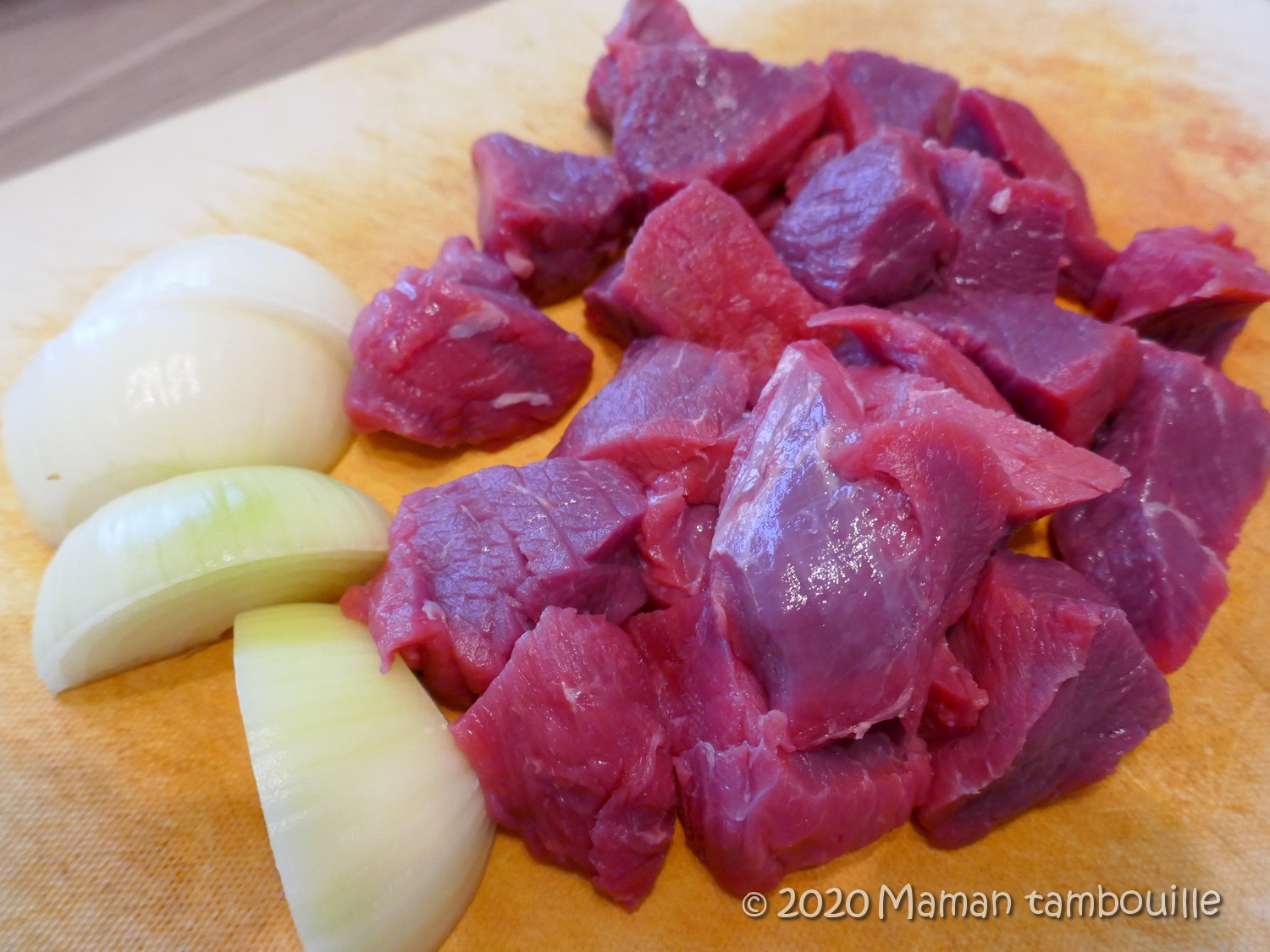 Couper le boeuf en gros morceaux et les oignons en 4.