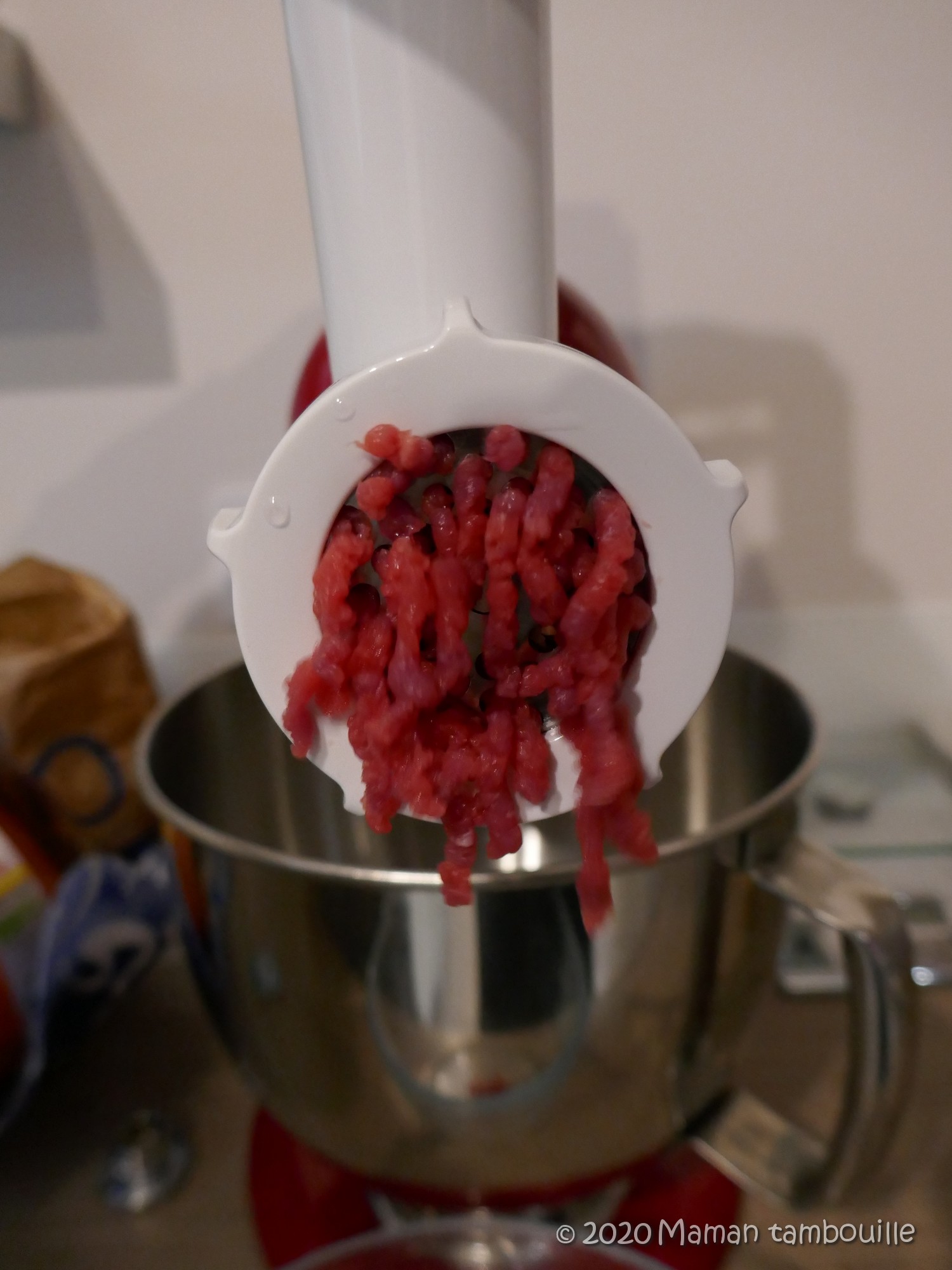 Depuis que j’ai mon KitchenAid et son super accessoire le hachoir Ă viande, je hache, je hache et je hache encore đ Les plats avec de la viande hachĂ©e plutĂŽt que la viande mixĂ©e (avant, sans hachoir Ă viande, je mixais) sont vraiment diffĂ©rents. La texture est parfaite, les saveurs bien rĂ©parties … bref, je suis fan de cet accessoire ! Tiens, je me dis au passage que je devrais faire une rubrique spĂ©ciale « Hachoir Ă viande » pour y regrouper toutes mes recettes.