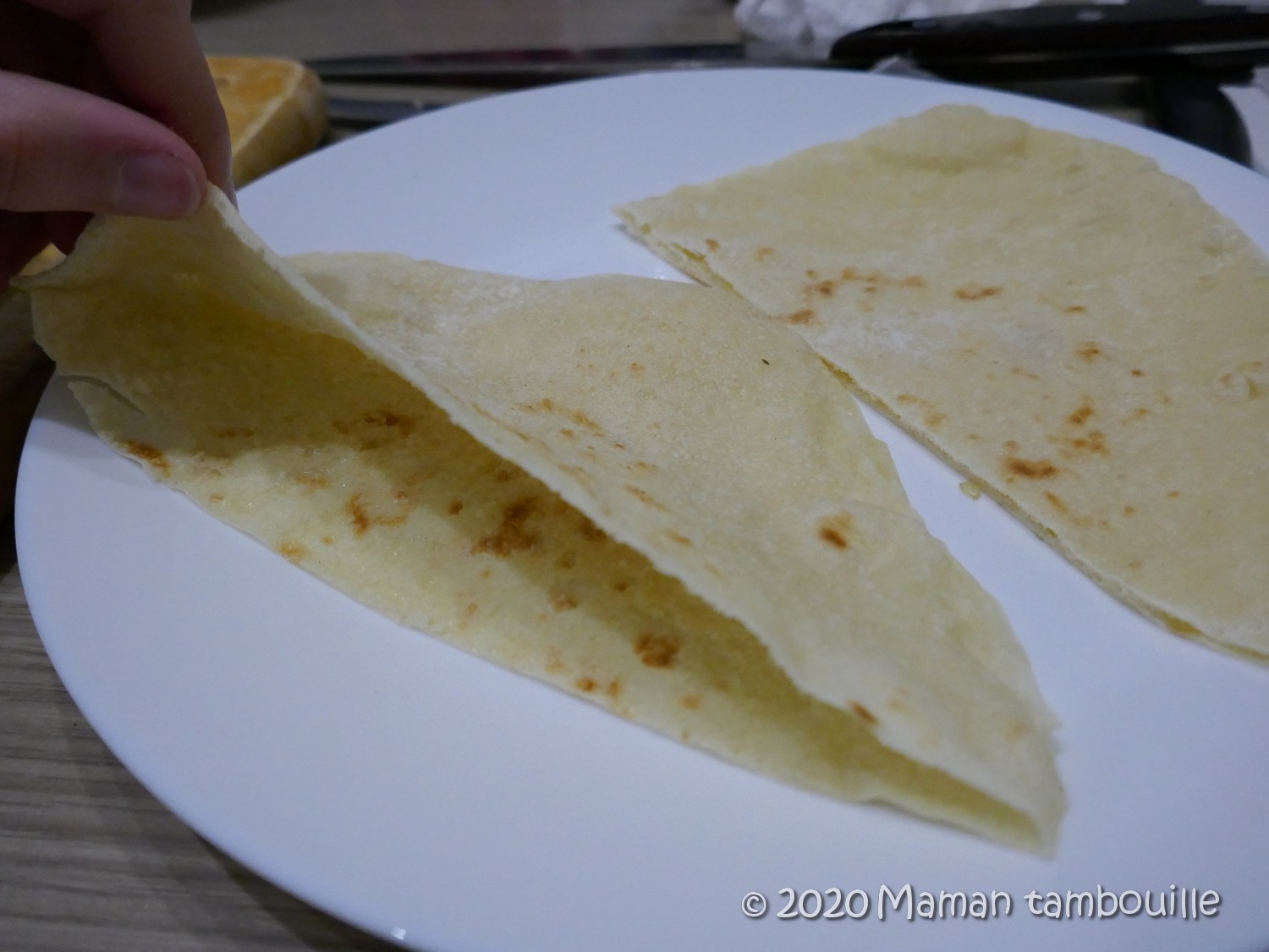 Couper Ă nouveau en 2 pour avoir au final des quart de pita.