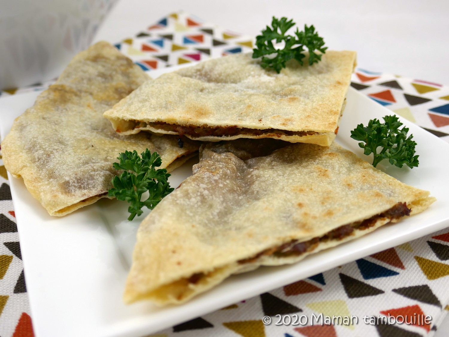 Donc voilà , une recette libanaise avec de la viande hachée fourrée dans des pains pitas maison (les pains pitas en sachet des rayons sandwich et pain de mie sont trop épais pour ce plat, il faut des pains plats en fins).