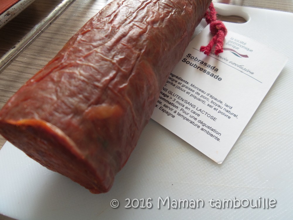 J’ai fait la moitié des pizzas avec de la soubressade. J’en ai coupé un morceau d’environ 3cm.