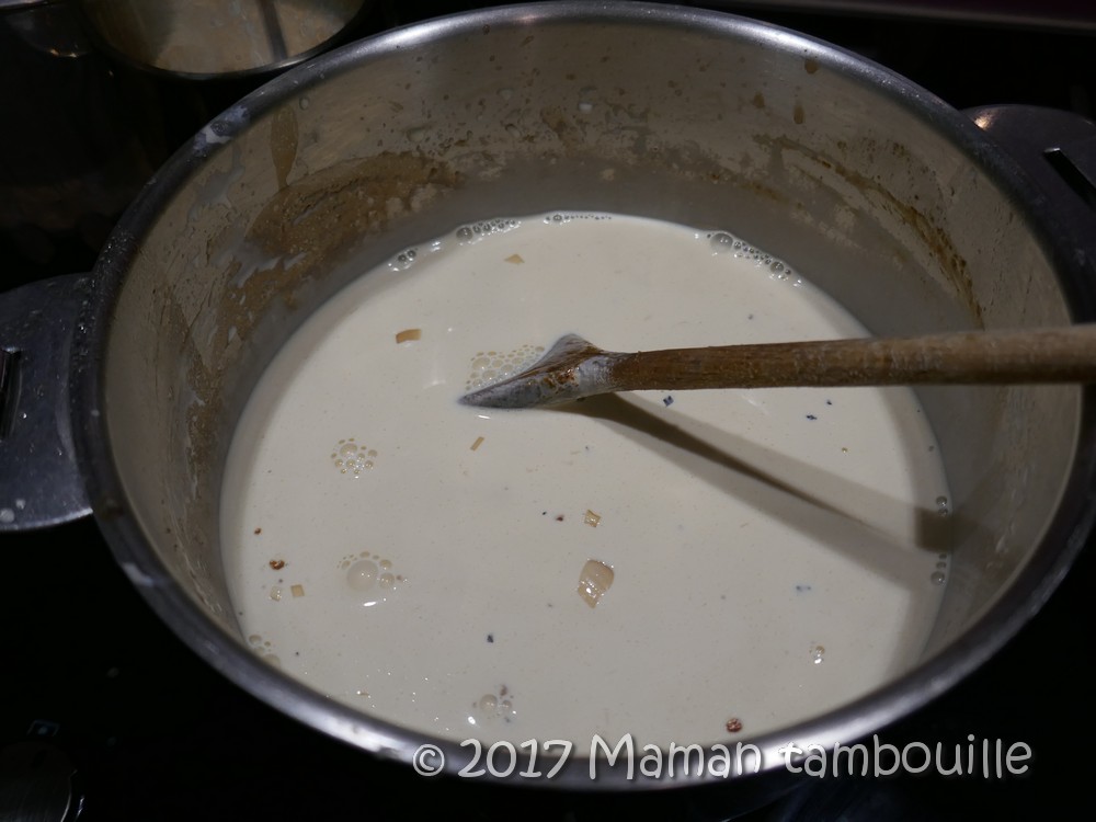 Quand il n’y a plus de flammes, rallumer le feu et laisser réduire 5 min.