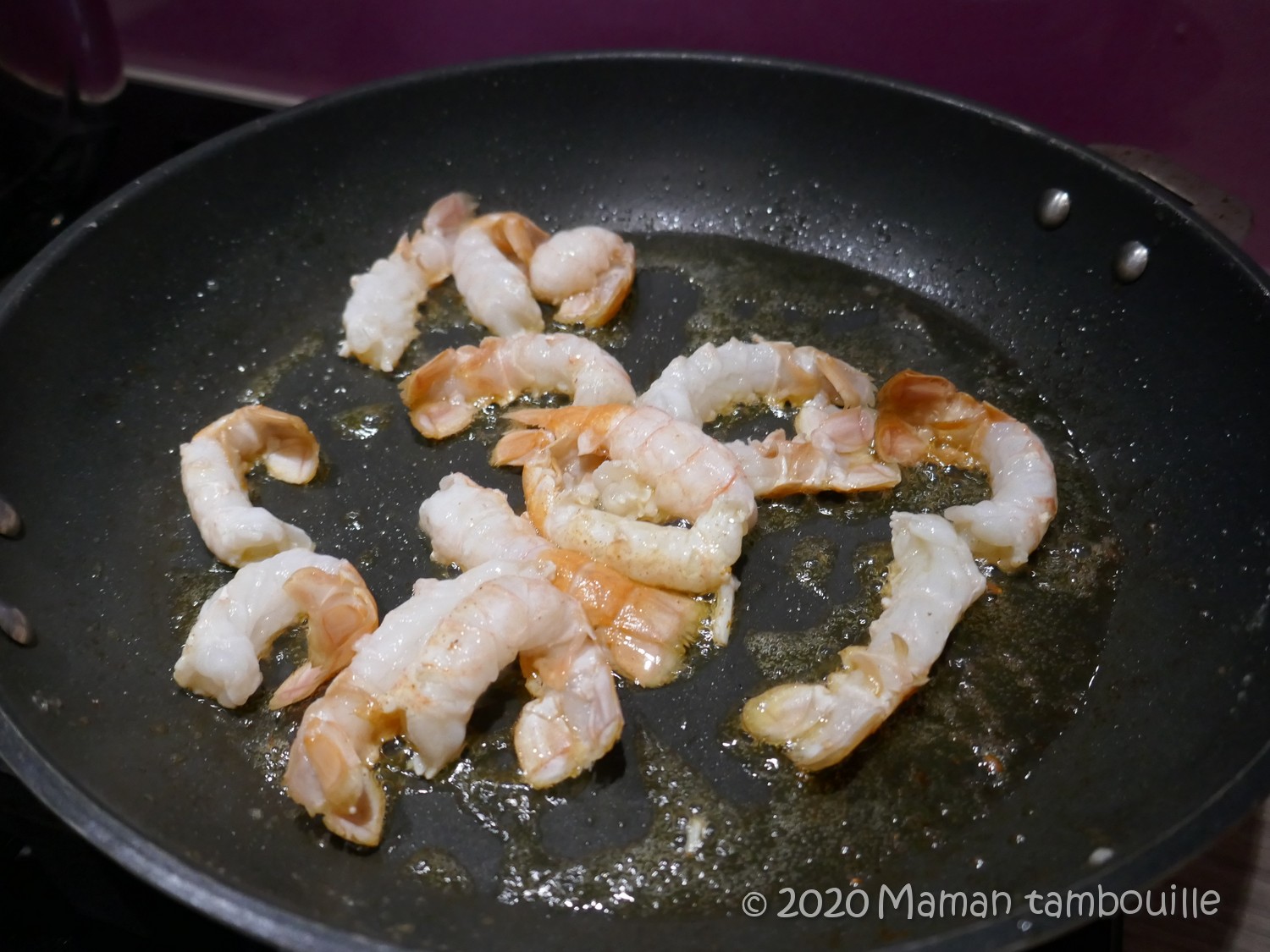 - environ 35 langoustines crues (j’ai pris des langoustines surgelées que j’ai mise à décongeler la veille)