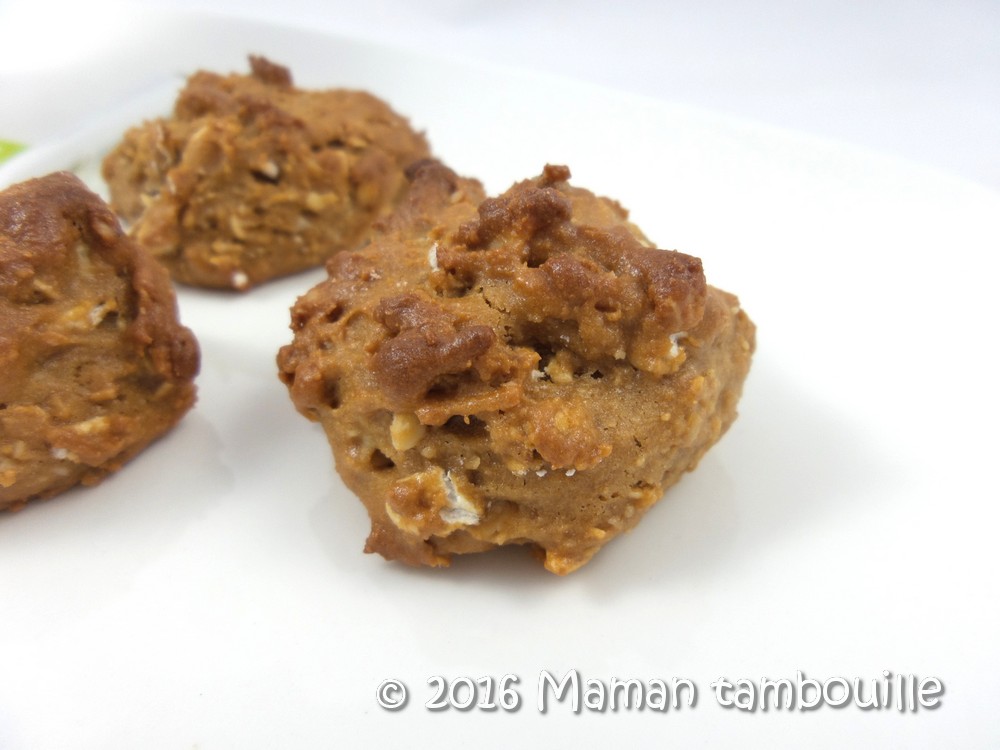 Hummm, des petits biscuits énergétiques à base de flocons d’avoine, de purée d’amande, de sucre muscovado et de farine de Fonio Bio Keïal.