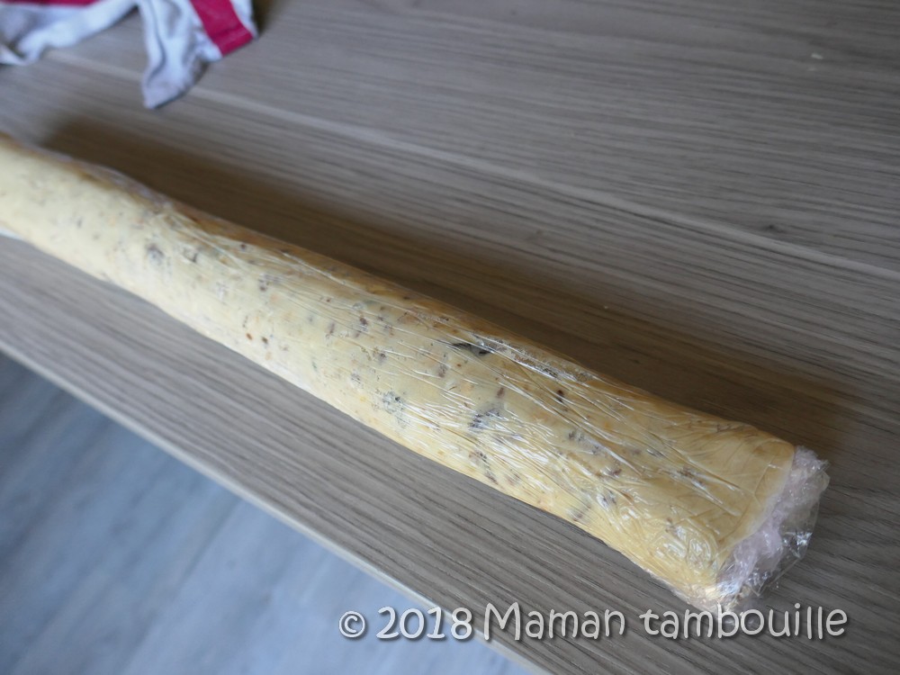 Former un boudin de pâte et l’envelopper dans un film transparent. Placer 15 min au congélateur.