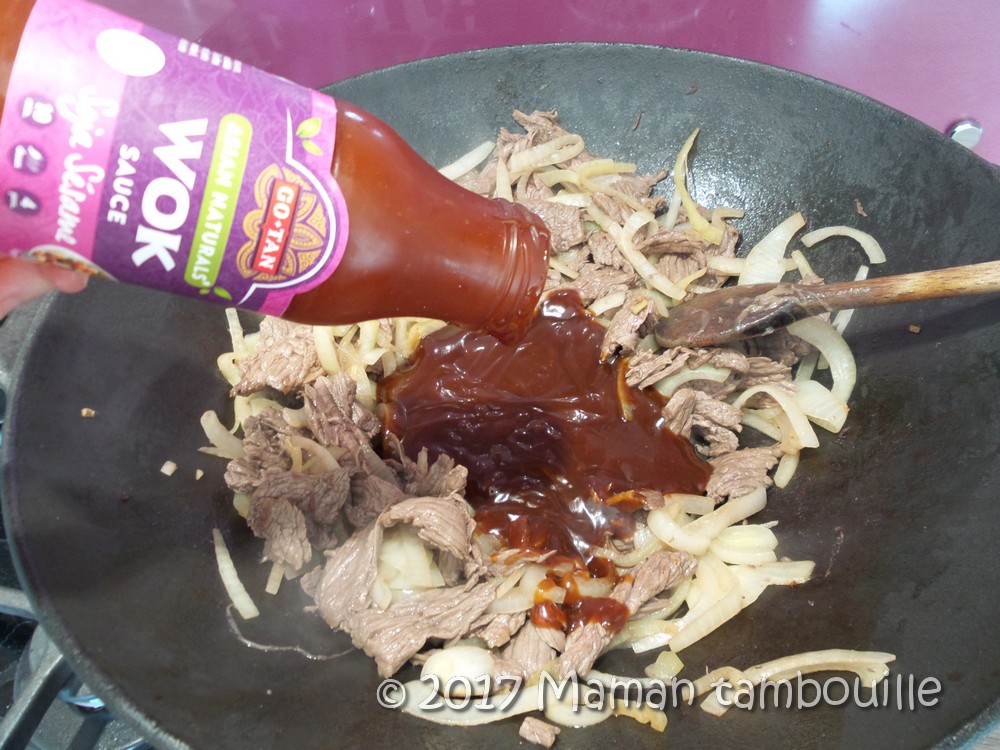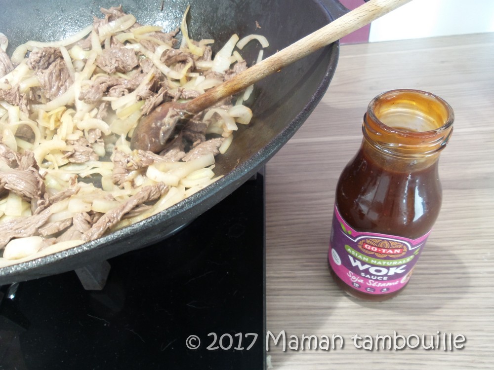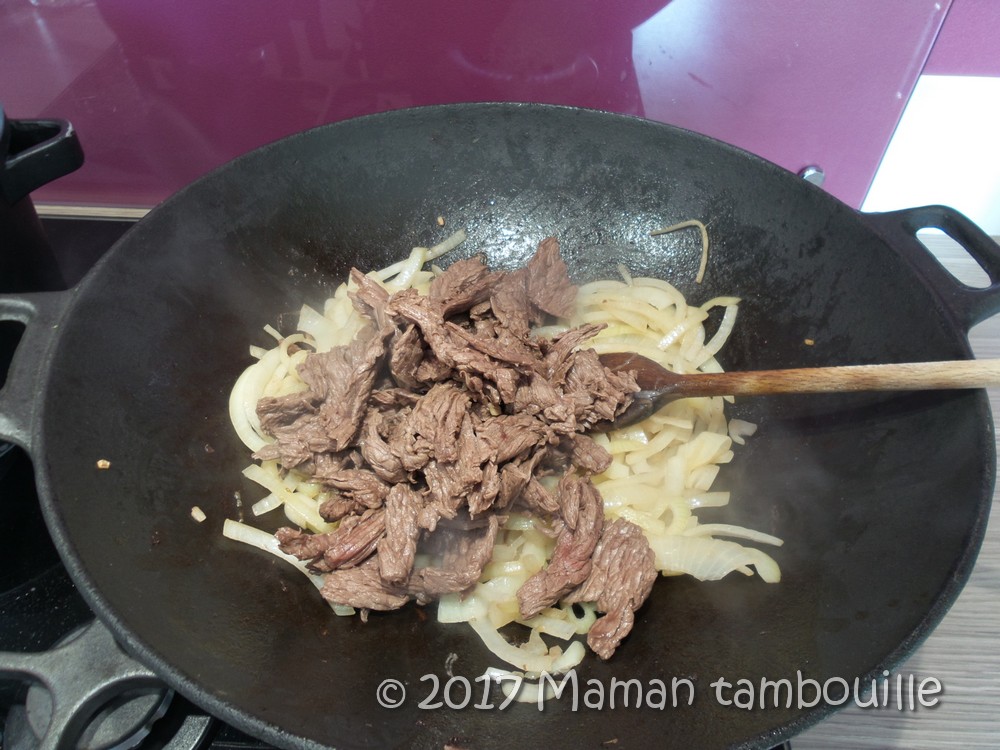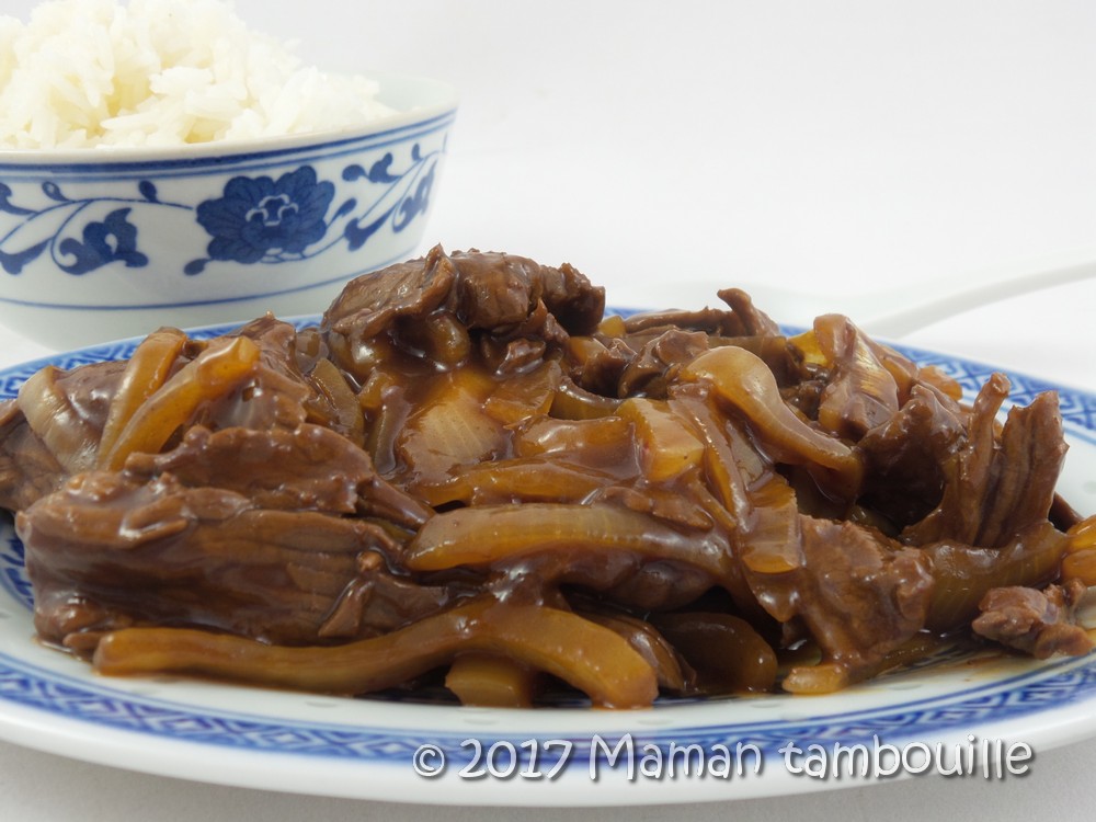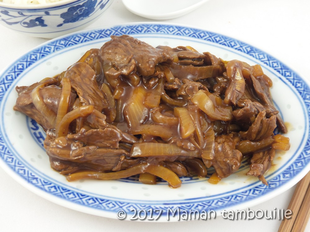 Hum, voilà un plat dont nous raffolons à la maison: le boeuf aux oignons façon asiatique.