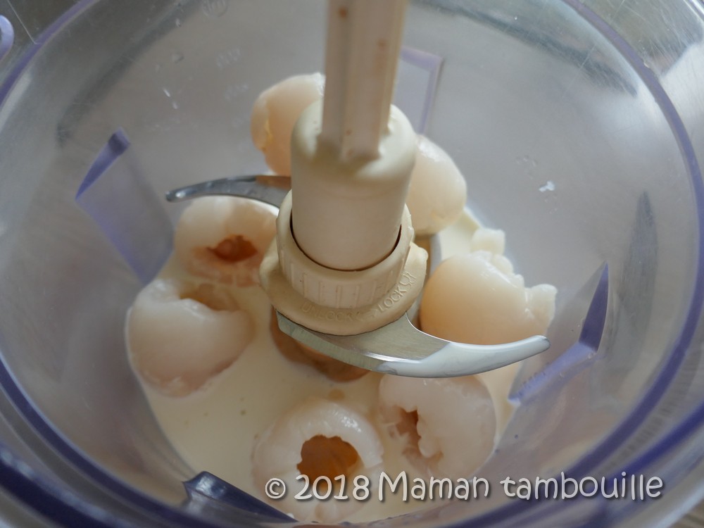 Mixer finement en purée les litchis avec 50g de crème liquide.