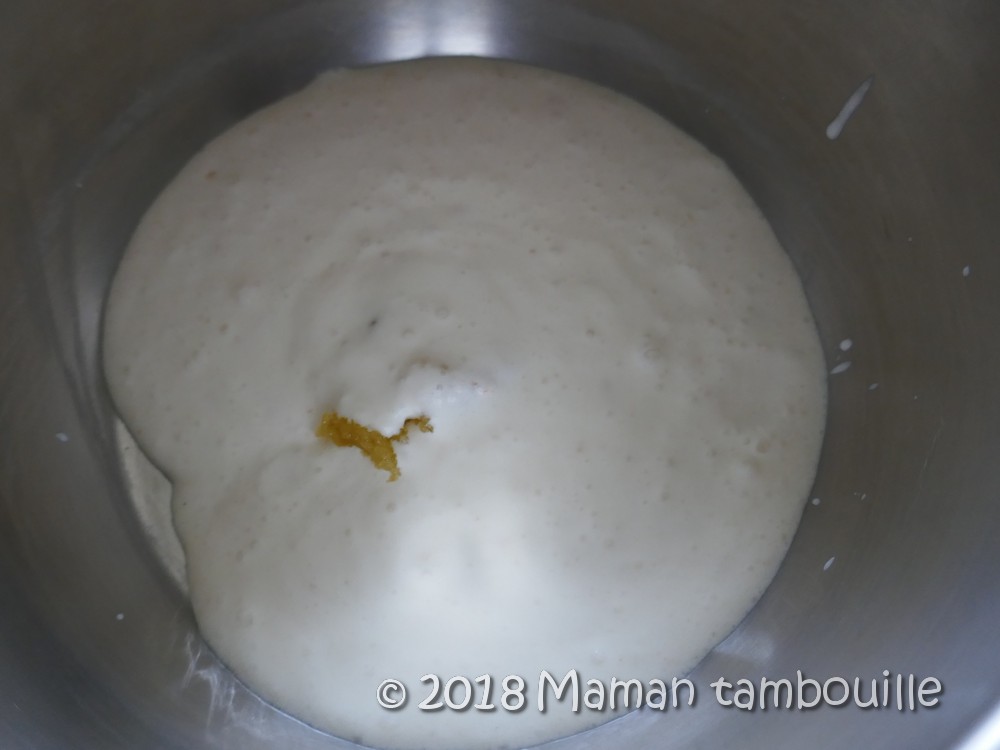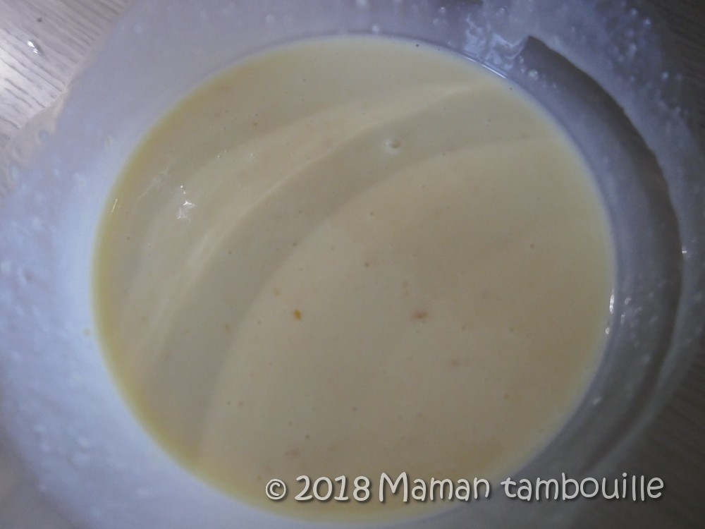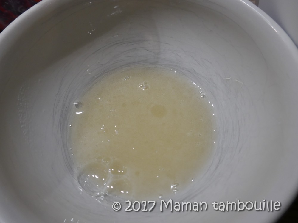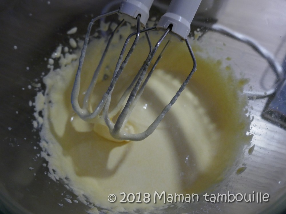 Fouetter longtemps (5 min au moins) jusqu’à ce que le mélange blanchisse et triple de volume.