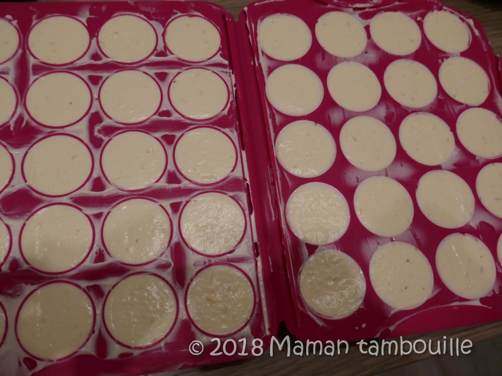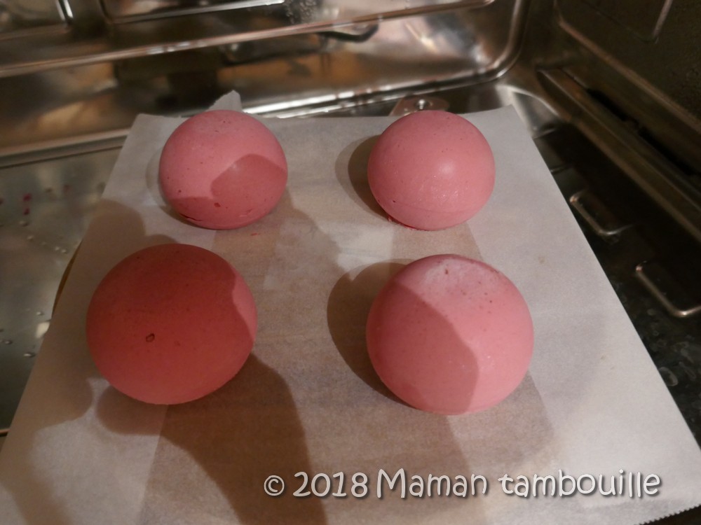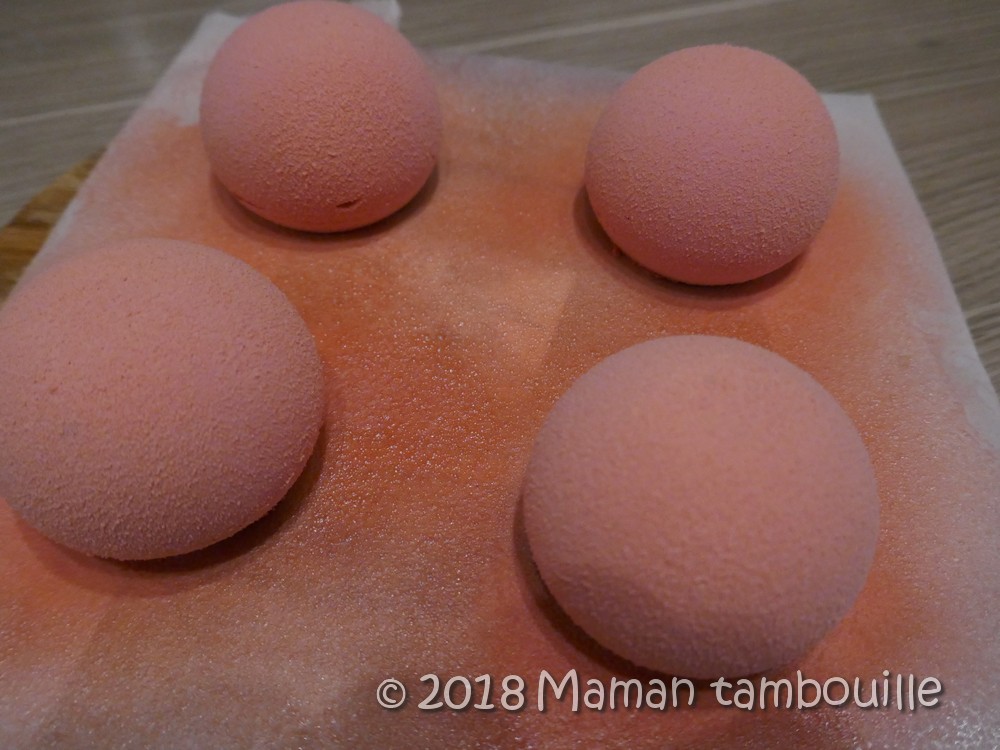 Verser dans des petits moules demi sphères en silicone (type moule à pop cakes) et lisser la surface. Mettre 24h au congélateur.