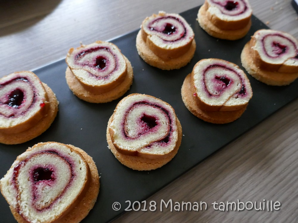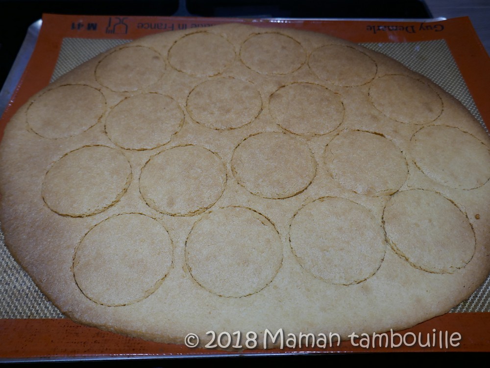 Couper le gâteau roulé en tranche et déposer sur chaque sablé.
