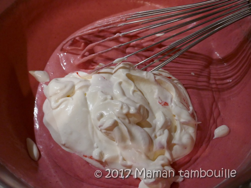 Ajouter ensuite la moitié de la crème fouettée et incorporer doucement.