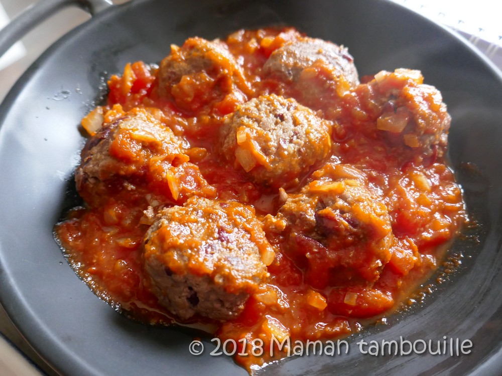 Mettre les boulettes dans un plat à four. Les napper avec la sauce tomate.