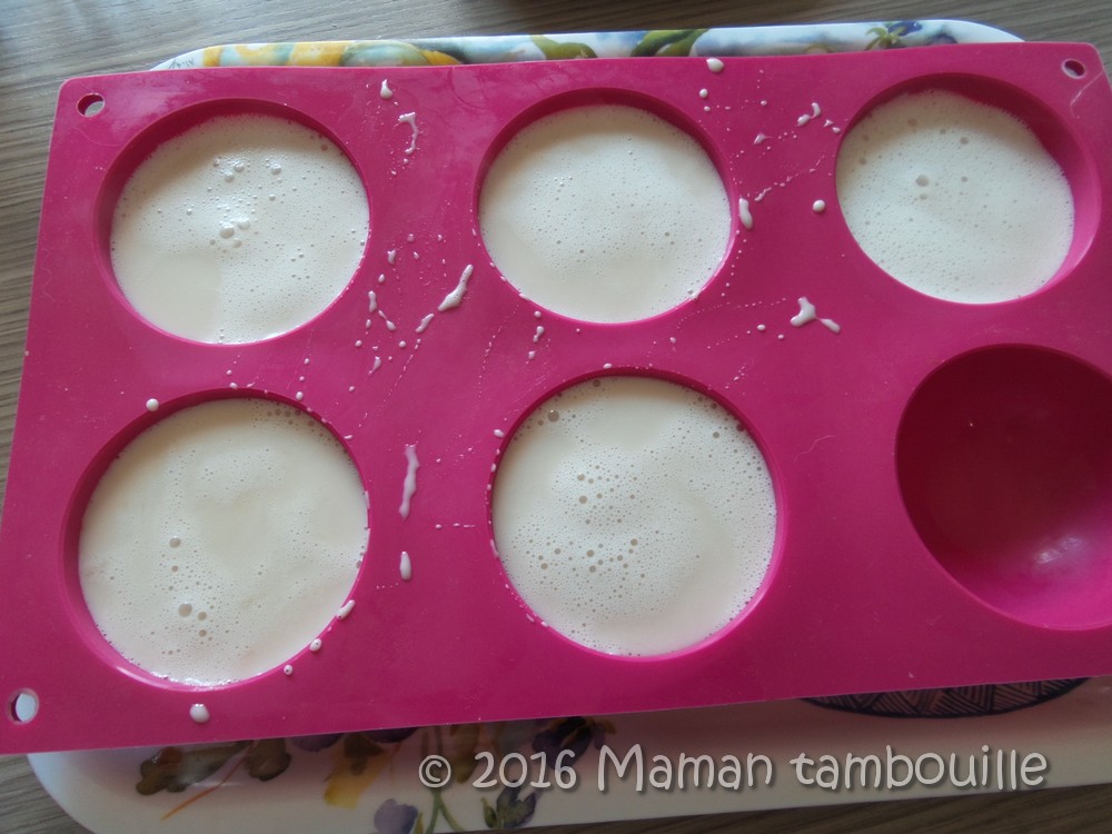 Verser dans les moules demi sphères (ou autre) en silicone.