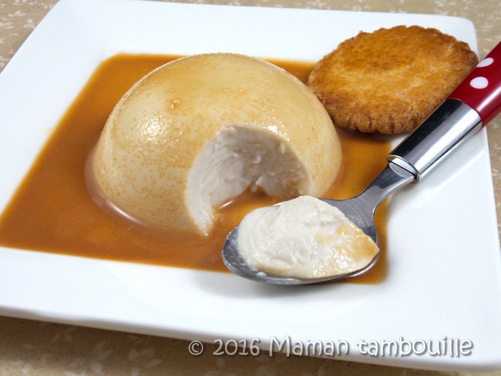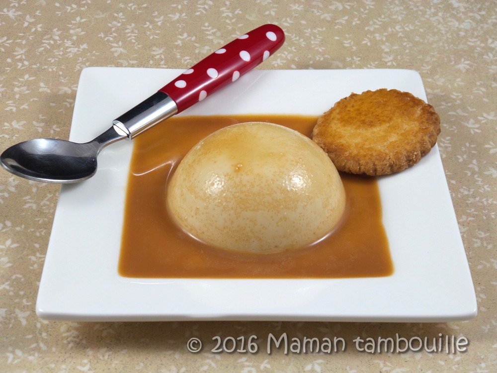 Le lendemain, démouler les panna cotta dans des petites assiettes. Napper de caramel et servir avec des petites galettes bretonnes.