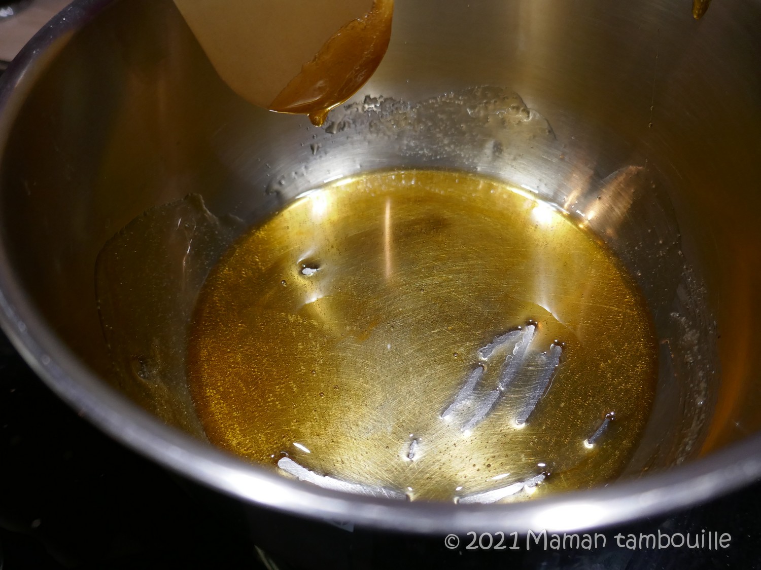 Laisser compoter quelques minutes et veillez à ce que le caramel soit bien dissout.