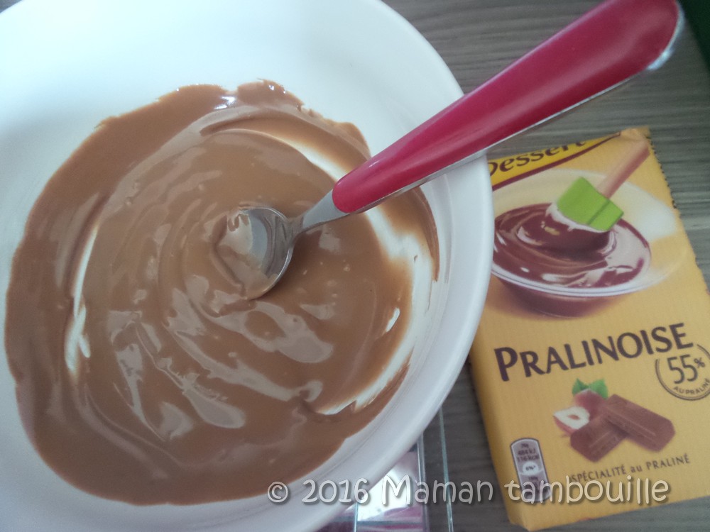 Il faudra veiller aussi à remplacer la pralinoise (qui contient de la noisette) de la feuillantine par du simple chocolat au lait.
