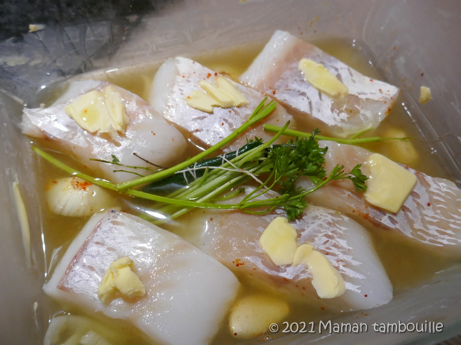 - 200ml de fumet de poisson (oups, je n’en avais plus, j’ai utilisé du bouillon de légume Bio à la place)