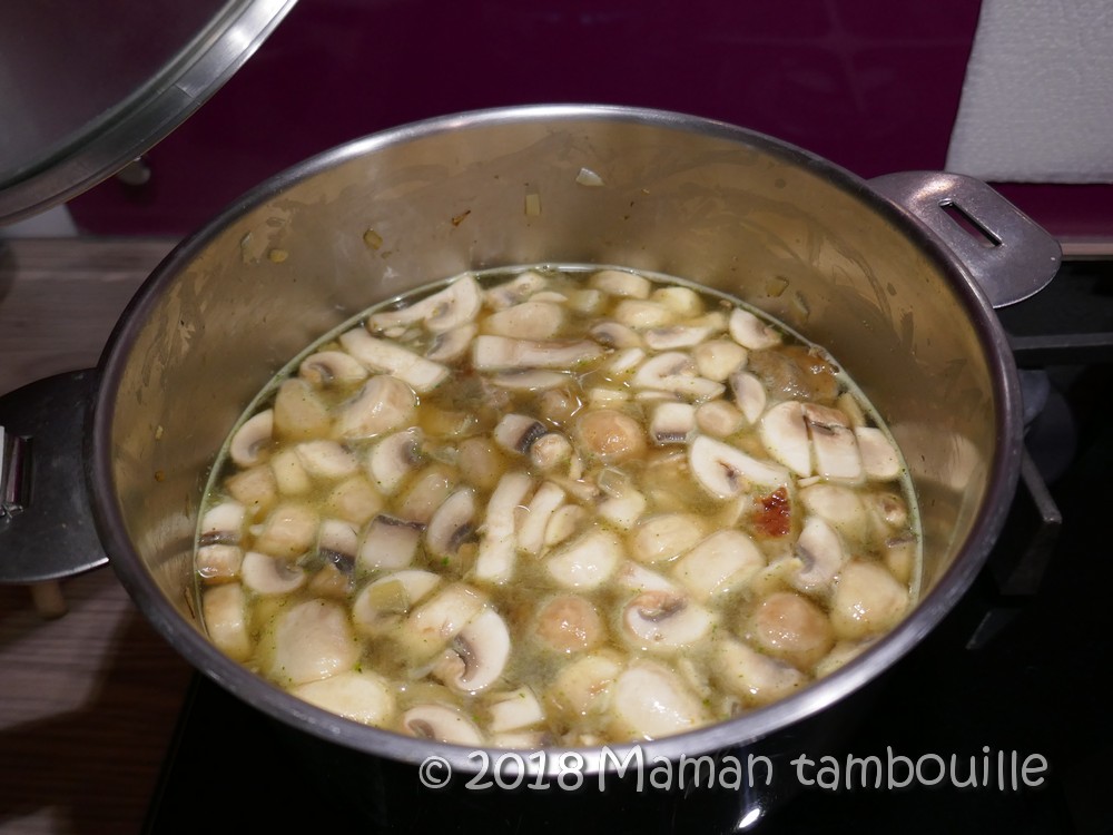 Laisser réduire les champignons 5 min.