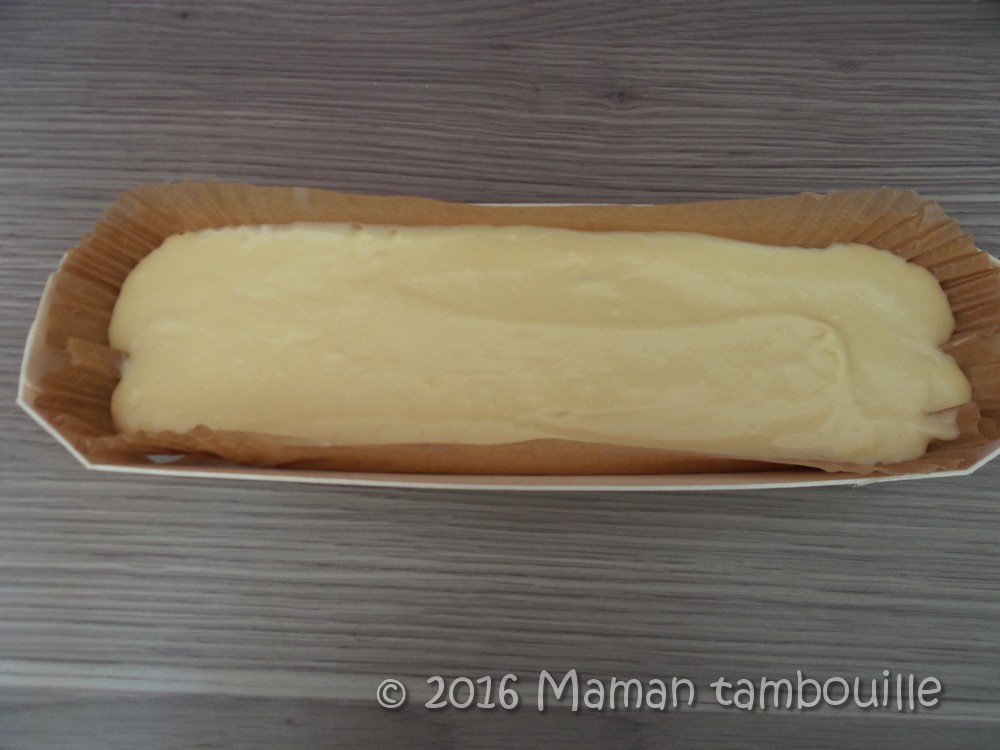 Verser dans un petit moule à cake beurré et fariné (un moule panibois pour moi).
