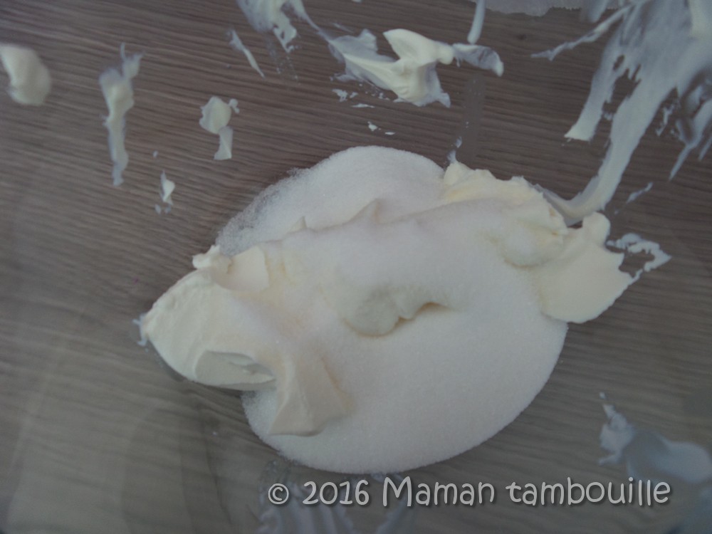 Battre le sucre avec le mascarpone.