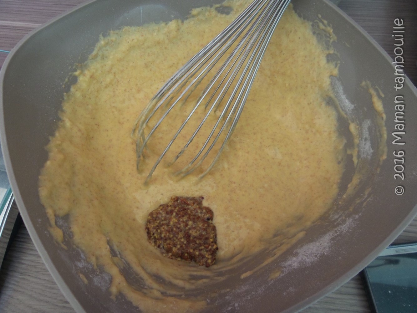 Bien mélanger puis ajouter la moutarde et 1 petite cuillère à café de sel.