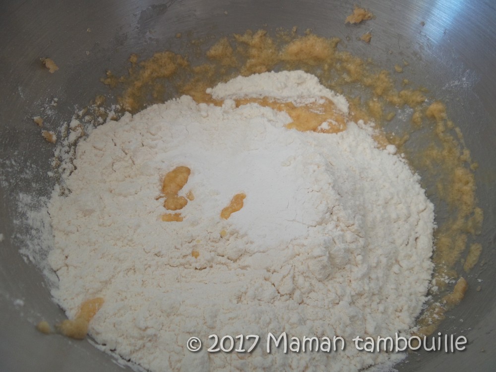 Fouetter à nouveau puis ajouter la farine et la levure.