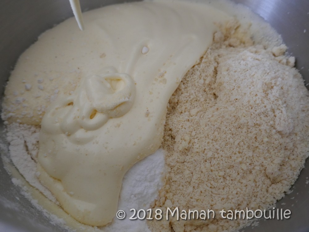Ajouter la farine et la levure tamisée et la poudre d’amande.