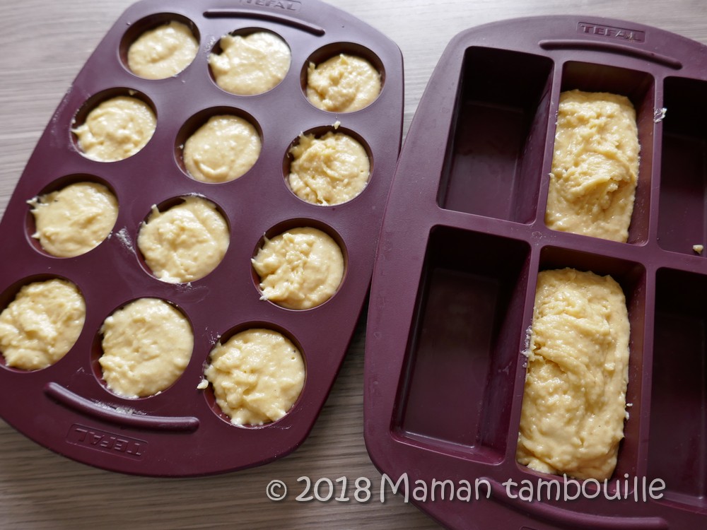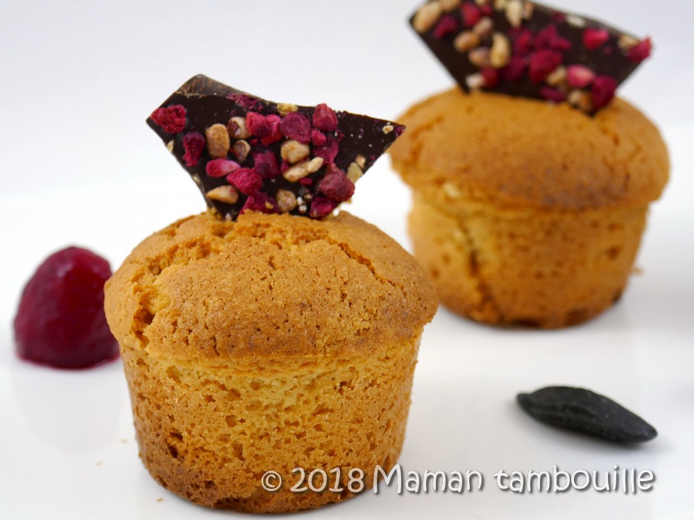 J’ai planté dans chaque cake un petit morceau de chocolat (Côte d’Or aux éclats de noisettes caramélisées et framboises reçu dans la dernière Degustabox).