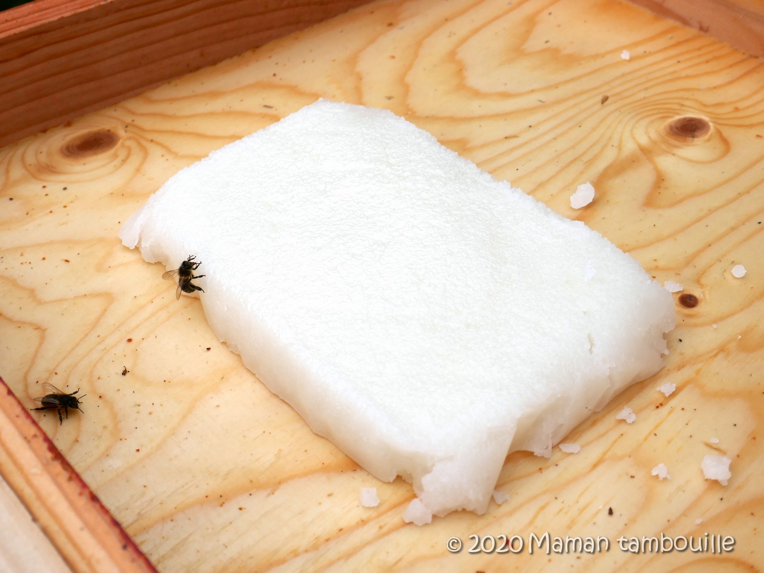 Le lendemain, le candi est prêt à être placé dans le nourrisseur de la ruche.