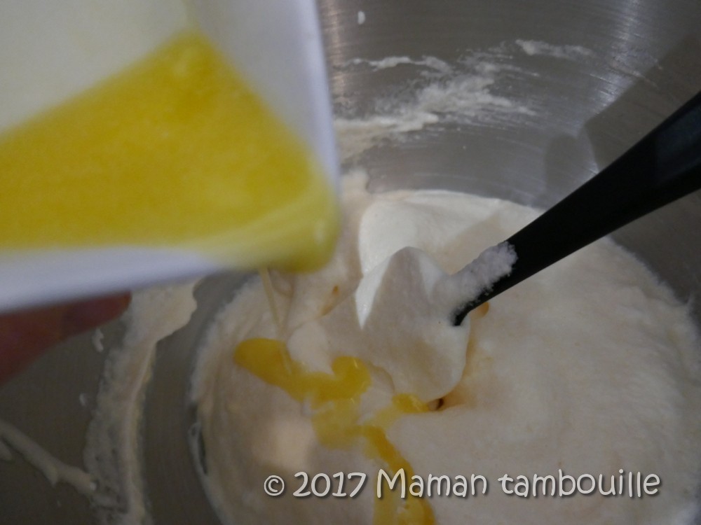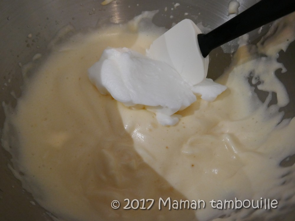 Ajouter le reste de fécule (30g) et le reste des blancs. Mélanger.