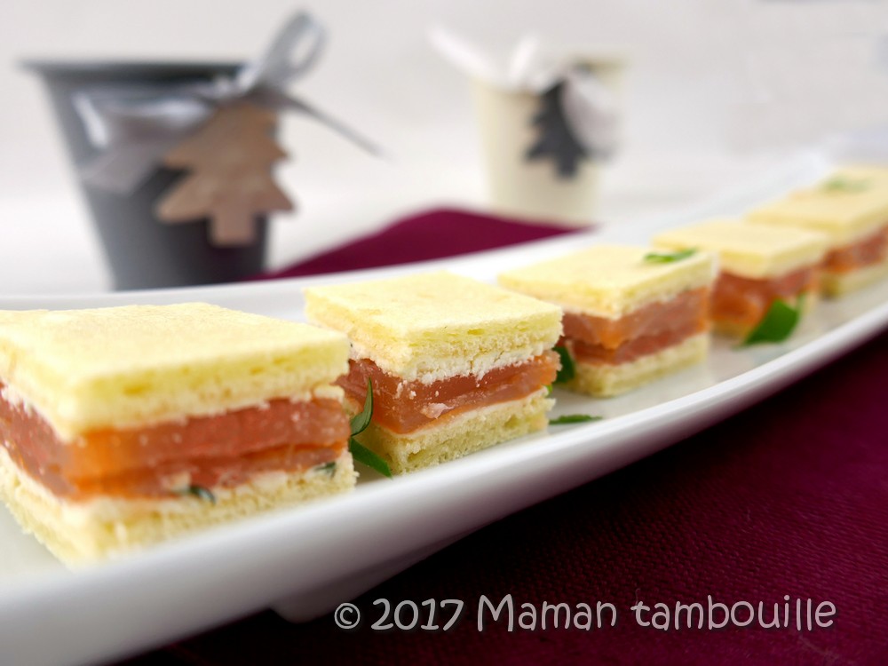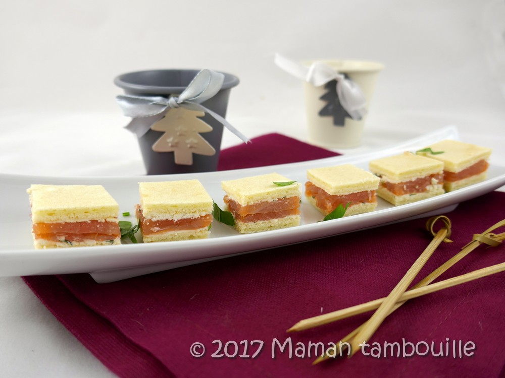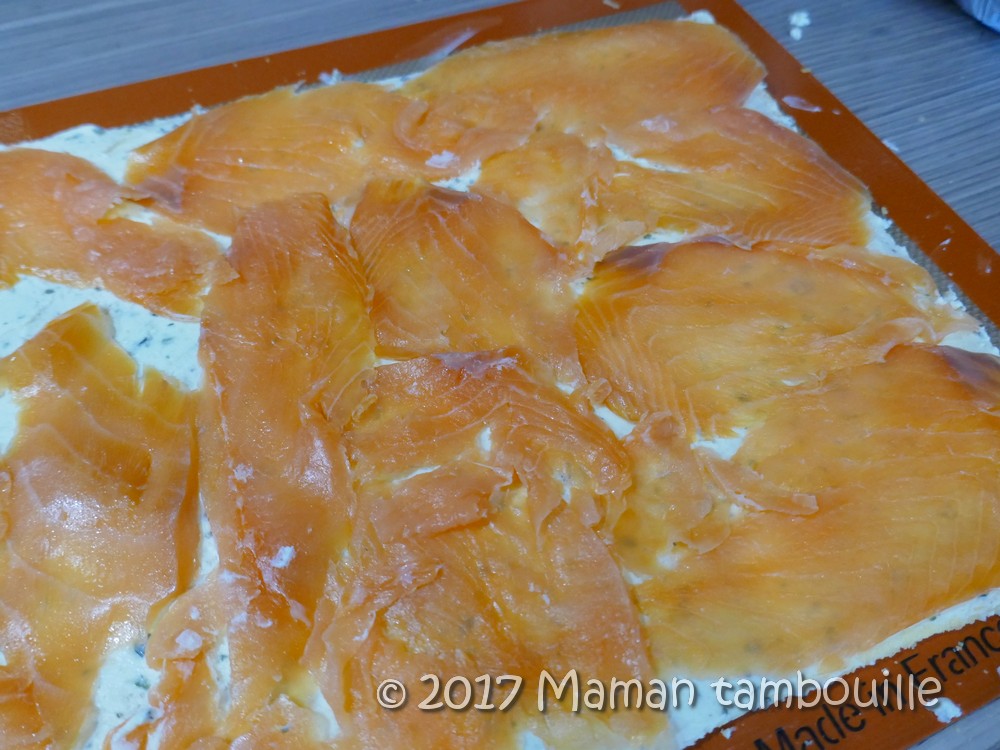 Encore des petits carrés apéritifs à dévorer sans modération. Aujourd’hui, ce sera une garniture au fromage frais ail et fines herbes et au saumon fumé. Facile, assez rapide à préparer et, en plus, on peut les faire à l’avance sans problème.