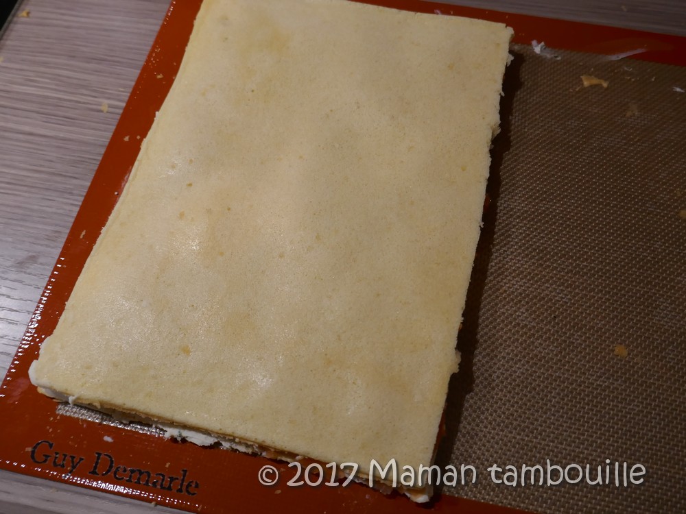 Couper le biscuit en 2 et replier un côté sur l’autre. Appuyer un peu pour bien coller les 2 parties et réserver 2h au frais.