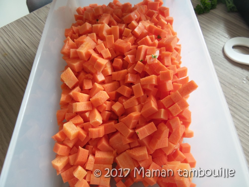 Couper les carottes en petits dés (au coupe légume pour moi).