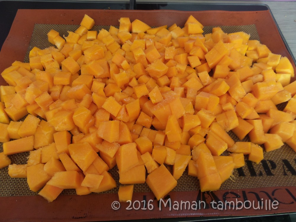 Enfourner 30 min à 190°. La courge doit être fondante mais pas sur-cuite.