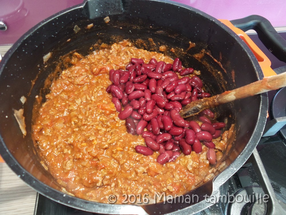 Laisser mijoter 15 min puis ajouter les haricots rincés et égouttés.