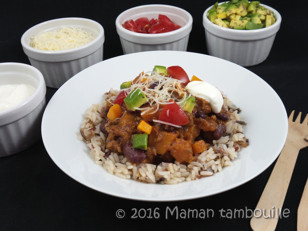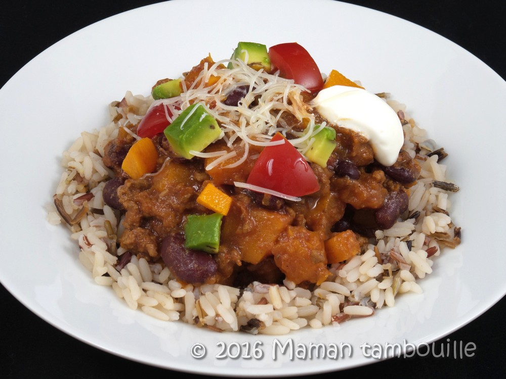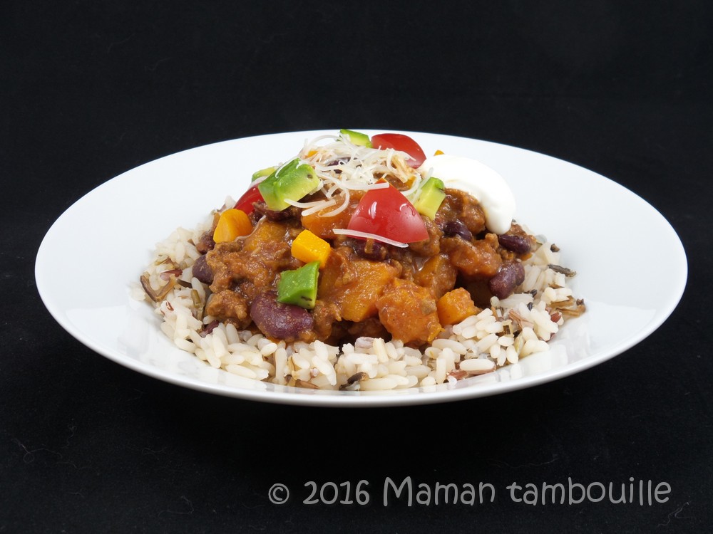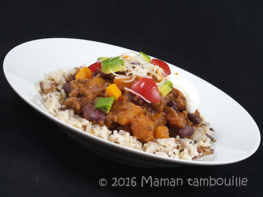 Dernièrement, j’ai repéré une recette de chili con carne à la butternut qui m’a grandement fait de l’oeil. Le chili, on adore ça et la butternut aussi donc l’association des 2 ne pouvait que nous plaire.