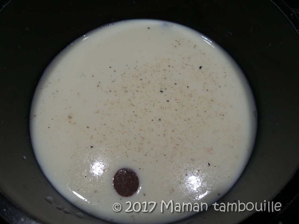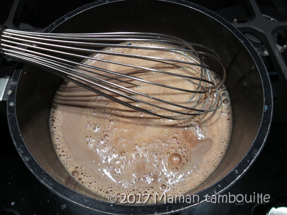 Quand le chocolat est fondu, ajouter la crème liquide et chauffer encore quelques instants en mélangeant.
