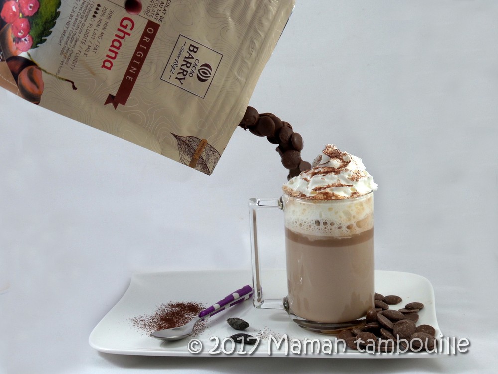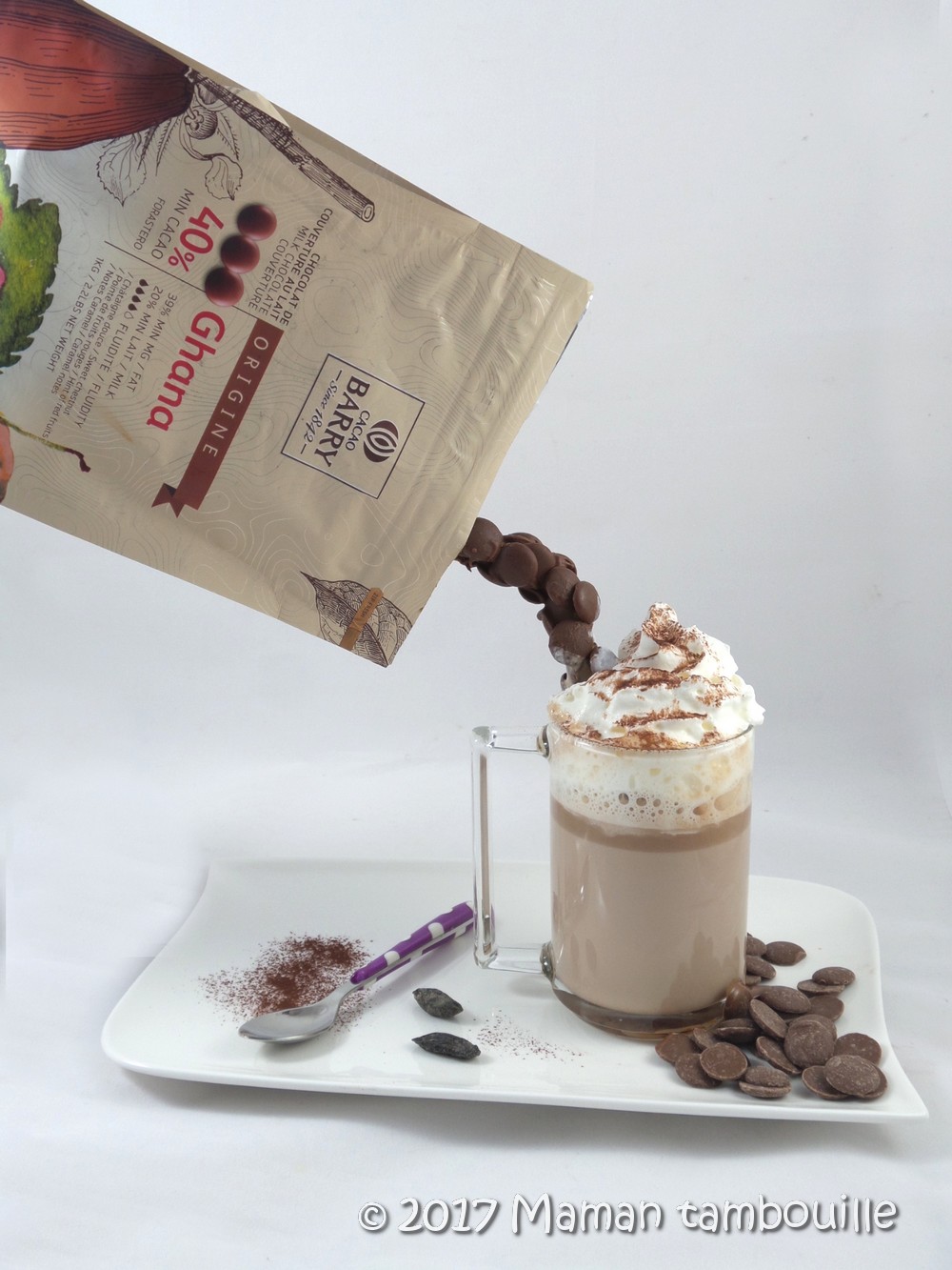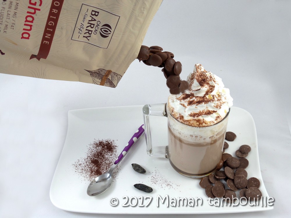 Et voilà ma deuxième participation aux défi gourmand de Cuisine Addict ! Cette fois-ci, le thème était Chauuud… Cacao ! et il fallait utiliser le Chocolat lait origine Ghana pour en faire une délicieuse boisson chaude. Avec du chocolat pâtissier, le résultat est bien loin de la cuillère à soupe de chocolat en poudre dans le bol de lait, bien meilleur surtout.