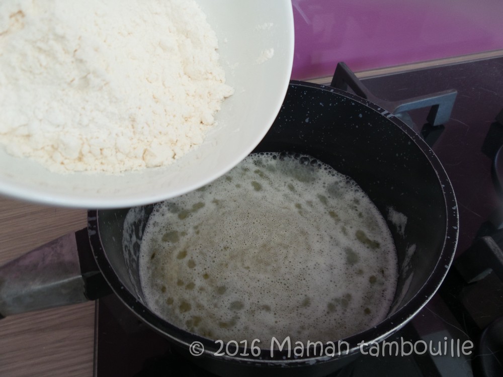 Hors du feu, ajouter en une seule fois la farine.