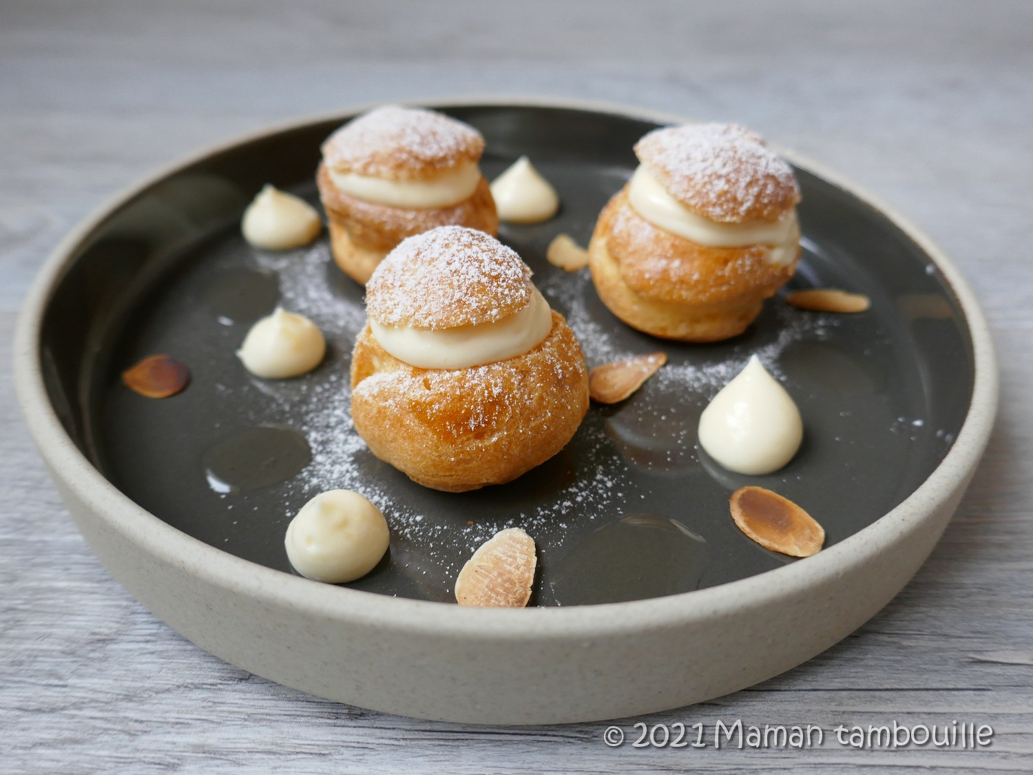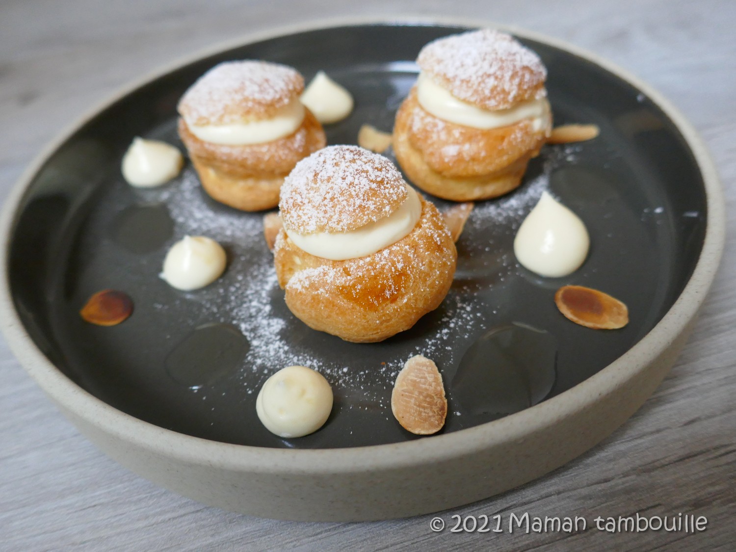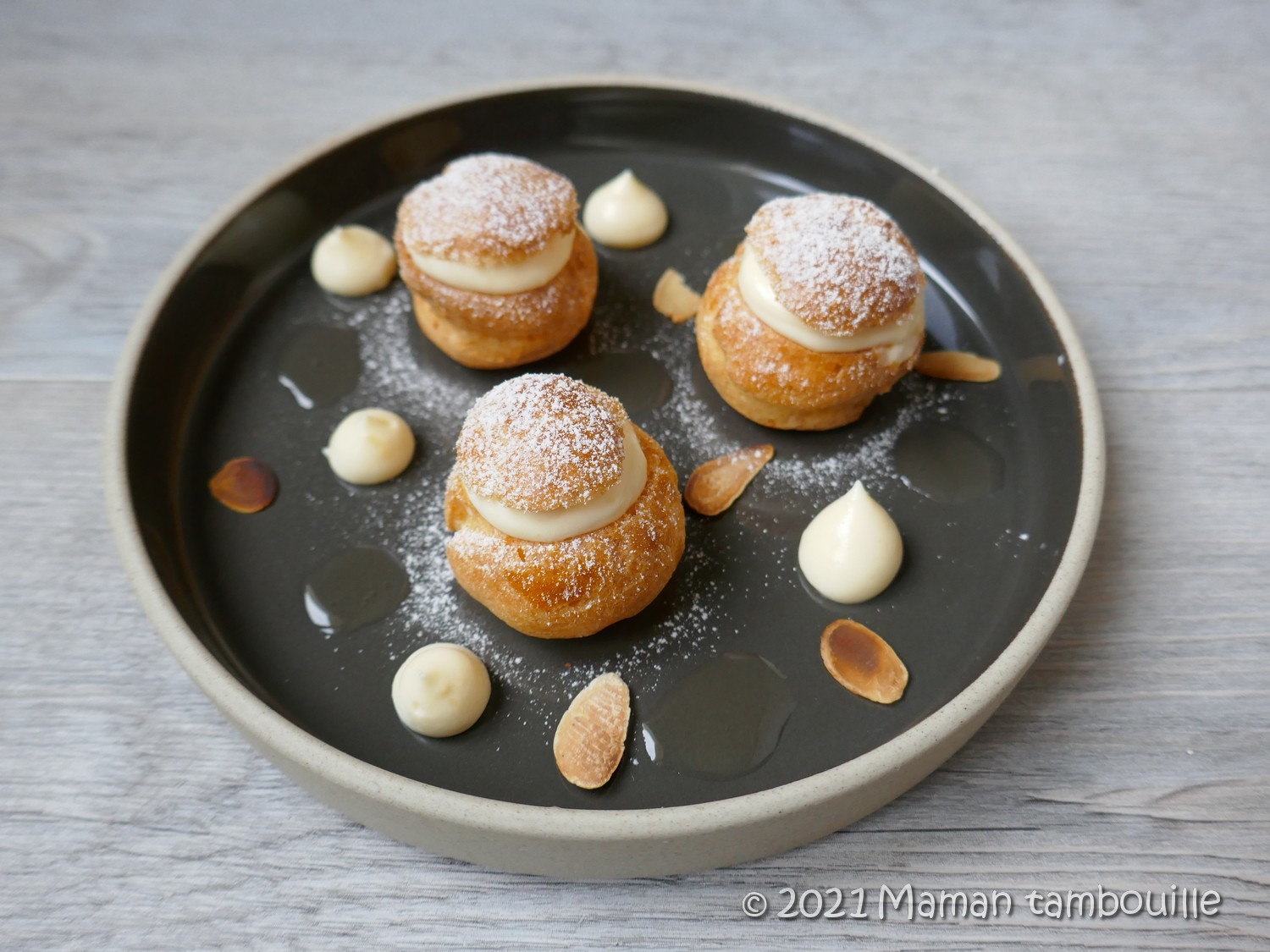 Un petit dessert à l’assiette qui fait son effet avec ces petits choux garnis d’une crème légère à la fleur d’oranger.