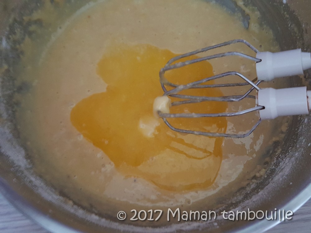 Ajouter la farine et la poudre d’amande. Fouetter à nouveau.