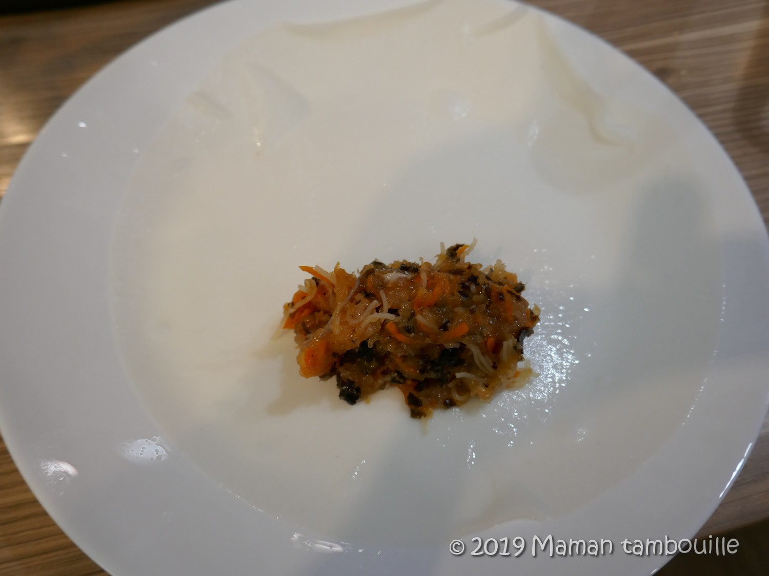 J’ai préparé une « vinaigrette » avec 40ml de sauce Ponzu de Kikkoman (une sauce soja au citron), 20ml d’huile de sésame et 20ml d’huile de tournesol.