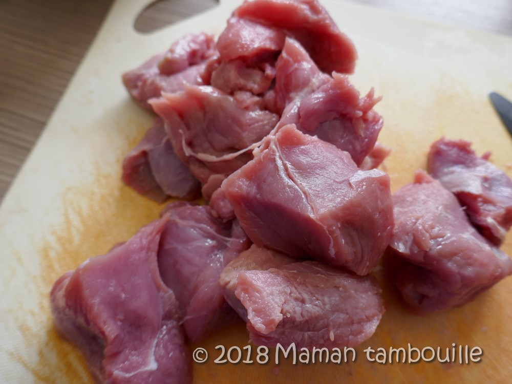 - 600g de veau (j’ai pris du veau à sauter, moins cher que le filet)