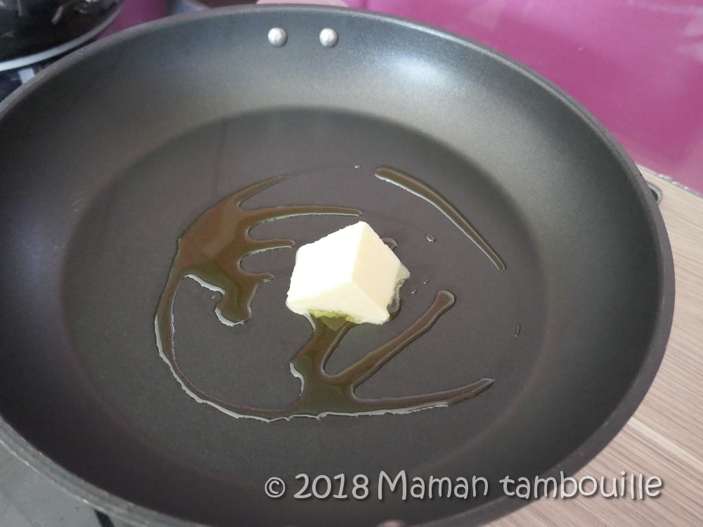 Dans une poêle, faire fondre un morceau de beurre et de l’huile d’olive.