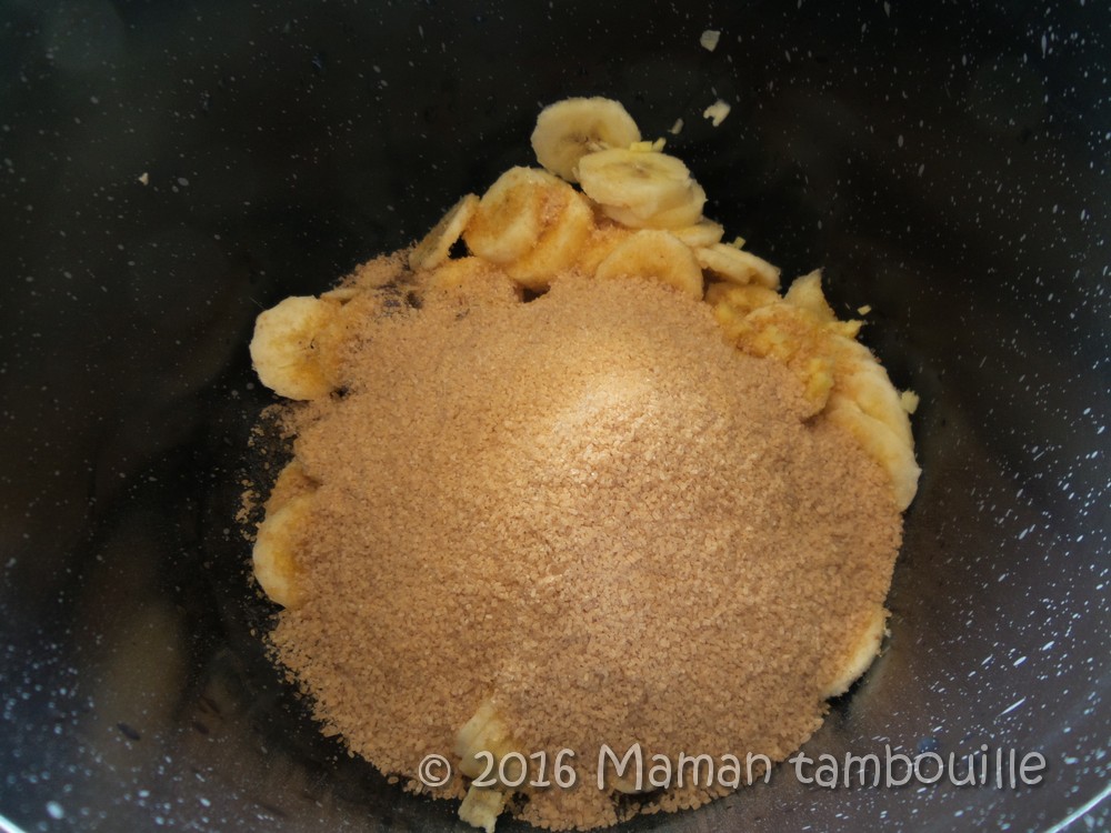 - 250g de cassonade (le même poids que les bananes donc vous pesez vos bananes sans leur peau et vous mettez la même quantité de cassonade)