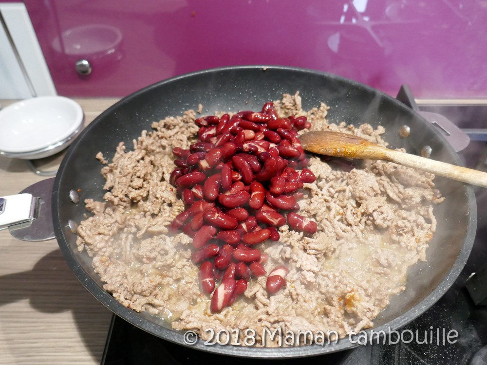 Ajouter les haricots égouttés et mélanger.