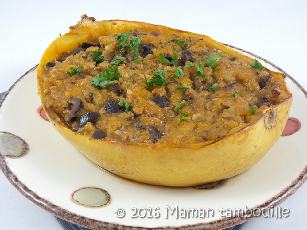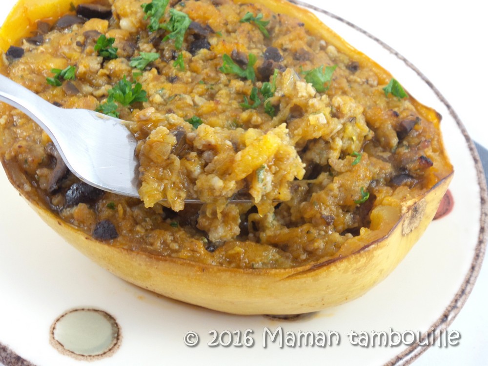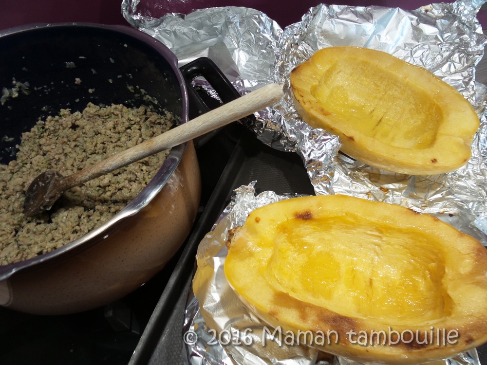 Remplir les coques de courge et enfourner 15 min à 200°.