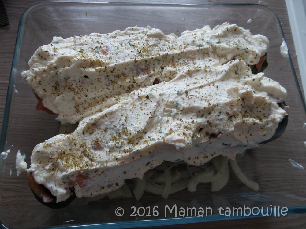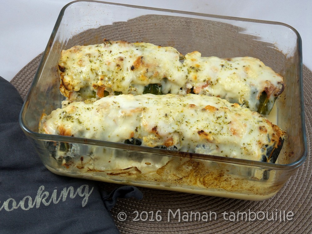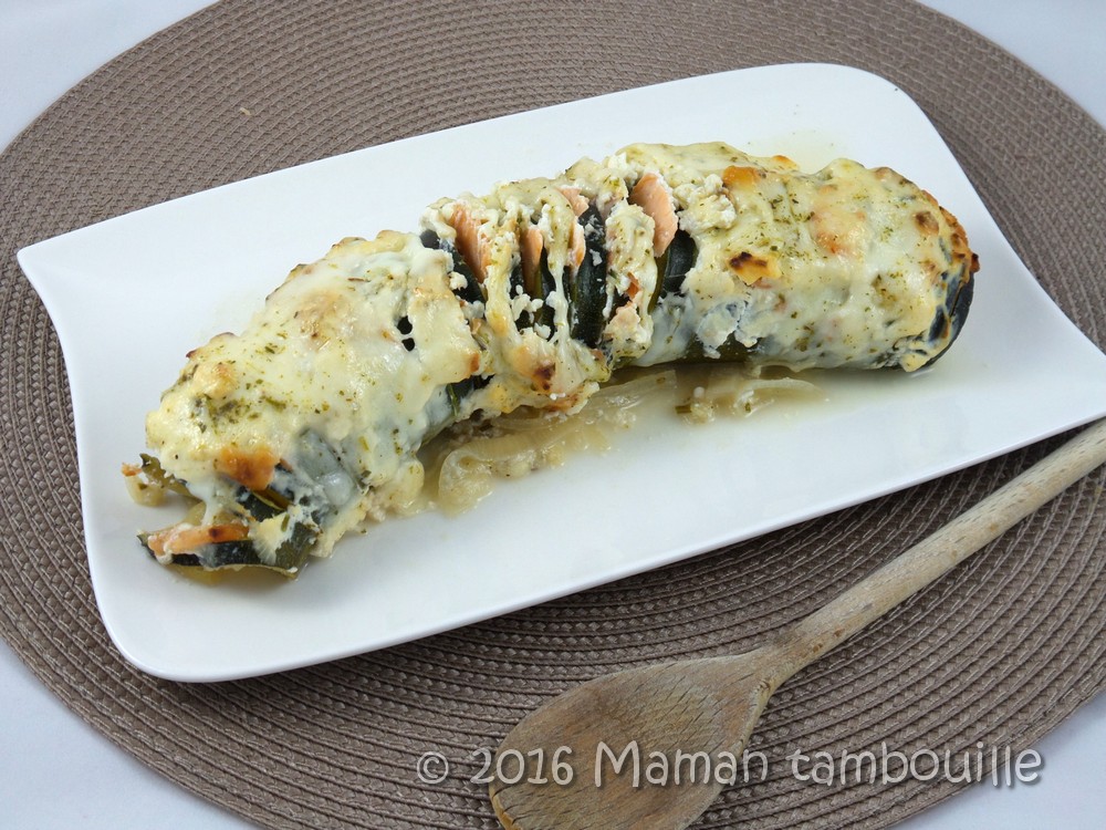 Alors voilà, je suis partie sur l’idée des pommes de terre à la suédoise pour cuisiner mes courgettes en les farcissant de saumon et en les nappant d’une crème à la ricotta.