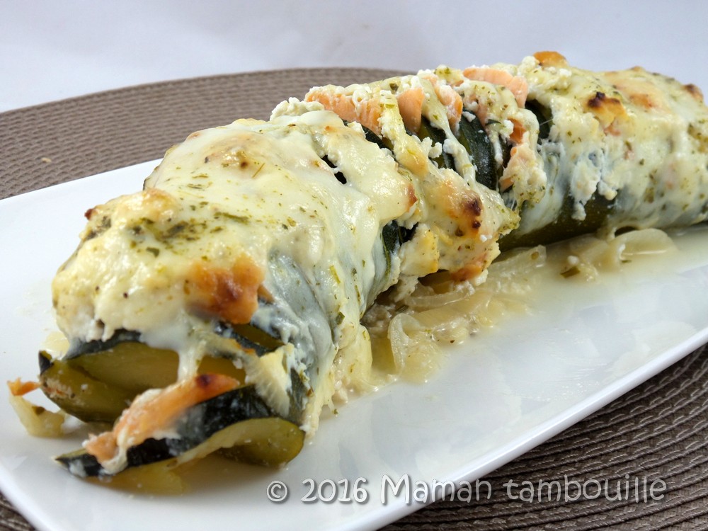 Les courgettes, le retour ! Toujours dans l’objectif de cuisiner les courgettes du jardin, voilà une nouvelle recette improvisée qui m’a permis d’utiliser 2 grosses courgettes, un paquet de saumon fumé que j’ai au frigo et un reste de ricotta de ma tarte à la tomate … bah oui, parce qu’en plus de ne pas vouloir gâcher les légumes du jardin, il me faut aussi écouler les restes du frigo avant le départ en vacances !